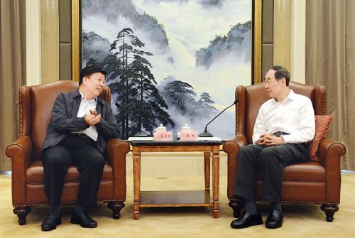 图为10月11日,福建省委书记尤权在福州会见姜大明部长一行。 本报记者 陈功榕 摄