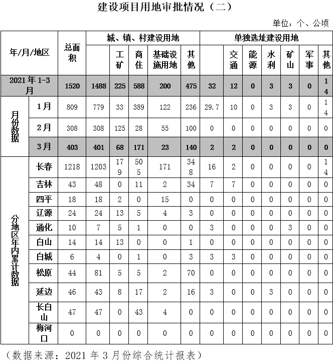2021年第一季度全省建设用地