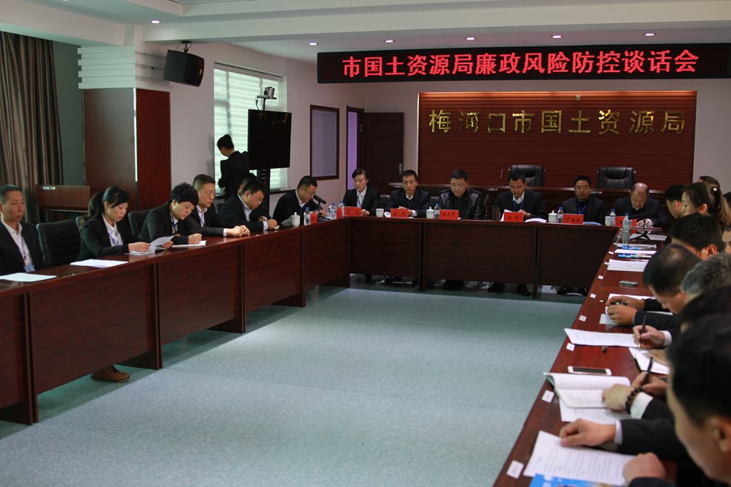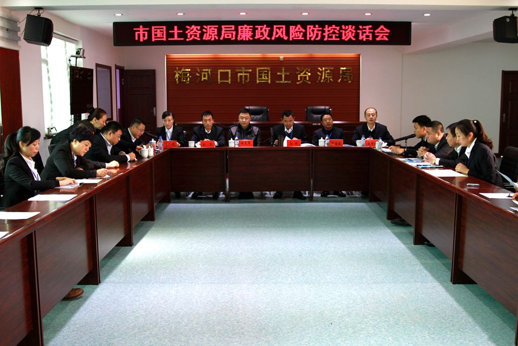 为深入贯彻落实全市深化“三严三实”专题教育专项整治干部不作为乱作为等损害群众利益问题会议精神和省国土资源厅、市纪委关于进一步加强党员领导干部廉政风险防控监督有关要求,11月16日上午,梅河口市国土资源局召开廉政风险防控工作谈话会。市纪委第五派驻纪检组、市国土资源局班子成员、开发区国土资源局党委成员、全局中层干部参加了此次会议。